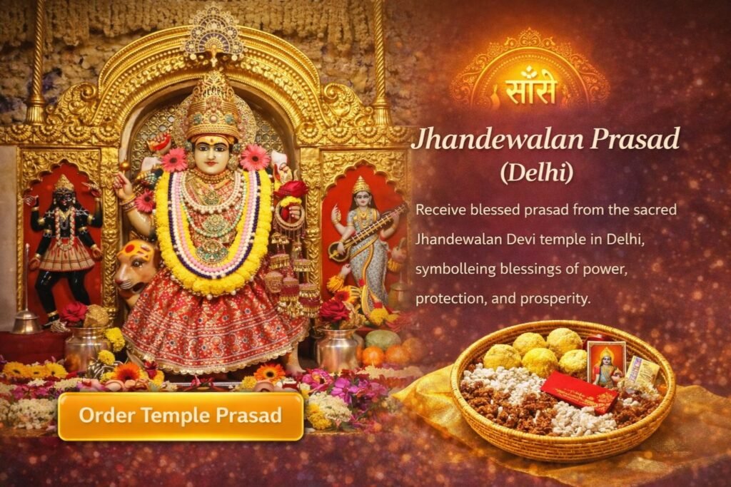Holy prasad from Mata Jhandewalan, known for protection and wish fulfillment.