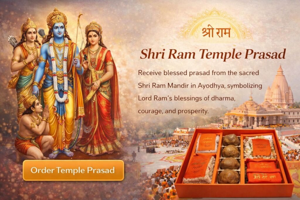 Blessed prasad from Shri Ram Janmabhoomi, symbolizing dharma, devotion, and divine protection.